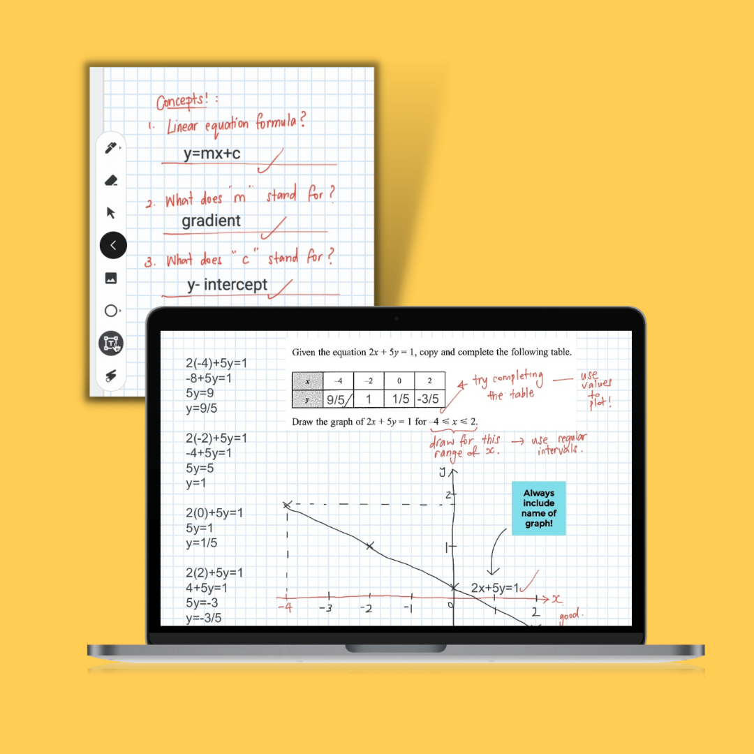 Above: Cayden’s teacher, Ms Nicole, notices that Cayden scores well on algebraic operations but has difficulty with linear equations and graphs. At the trial lesson, she tests his understanding of linear equations and graphs and explains to him these concepts